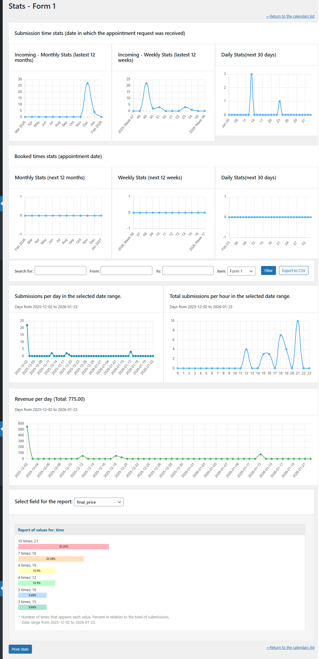 WP Time Slots Booking Form is a powerful booking calendar solution that enables users to create customized booking forms for appointment booking on specific calendar dates. With this intuitive tool, you can design a user-friendly form featuring a calendar where end-users can easily select available time slots and complete their bookings.