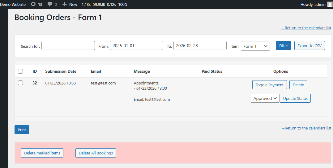 - Activate the WP Time Slots Booking Form plugin through the Plugins menu in WordPress